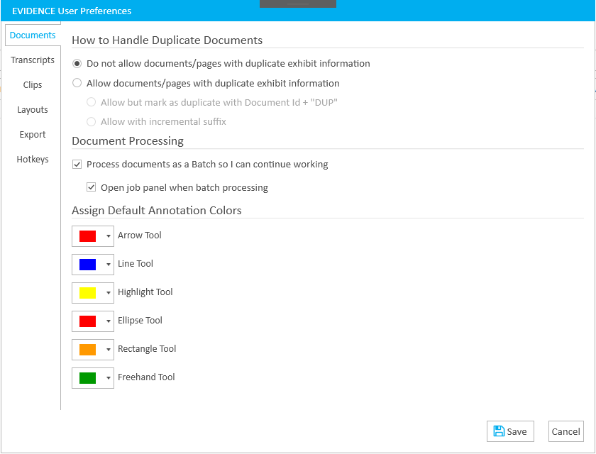 You set user preferences to make your experience in EVIDENCE more personalized and efficient. With your settings, EVIDENCE performs exactly the way you want it to. For example, you can set up custom clip naming options so that you don't have to manually name all the clips you have to create. EVIDENCE remembers what you want and performs accordingly.