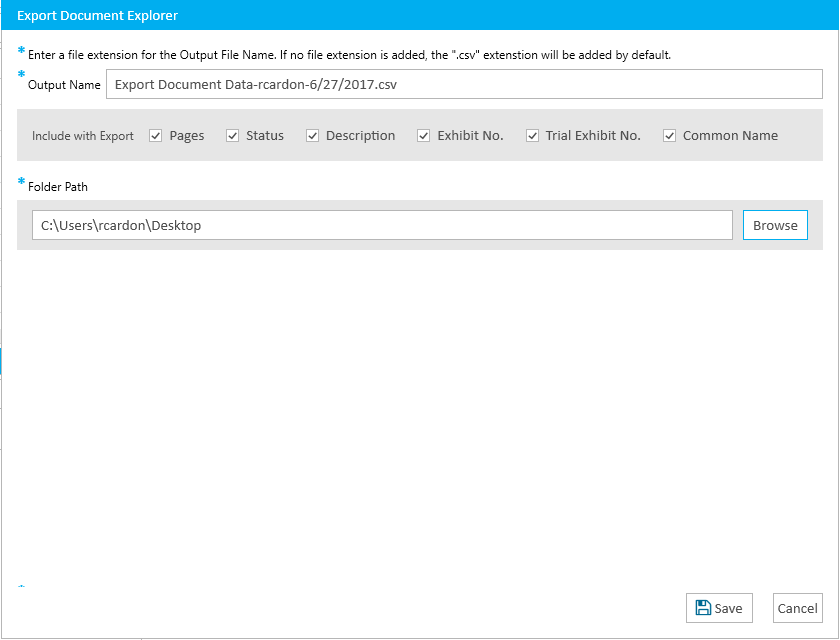 Click the Save button in the Export Document Explorer dialog.